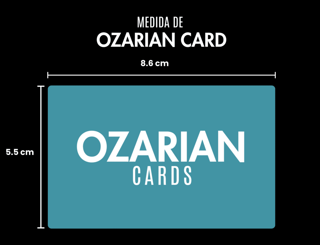 Todas las Ozarian Cards miden lo mismo que una tarjeta de crédito estándar: caben perfectamente en tu cartera, tarjetero o funda.